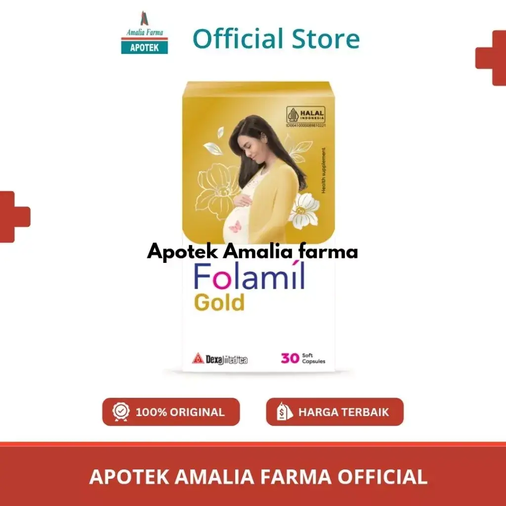 Folamil Gold Kapsul bermanfaat untuk membantu memelihara kesehatan ibu hamil dan mendukung perkembangan janin. Folamil Gold Kapsul mengandung asam folat, vitamin D3, kalsium karbonat, dan DHA. Kalsium dan vitamin D3 berguna untuk kesehatan tulang ibu dan janin, DHA membantu perkembangan otak dan mata janin, sementara asam folat berguna untuk pembelahan sel, serta produksi asam amino dan asam nukleat.